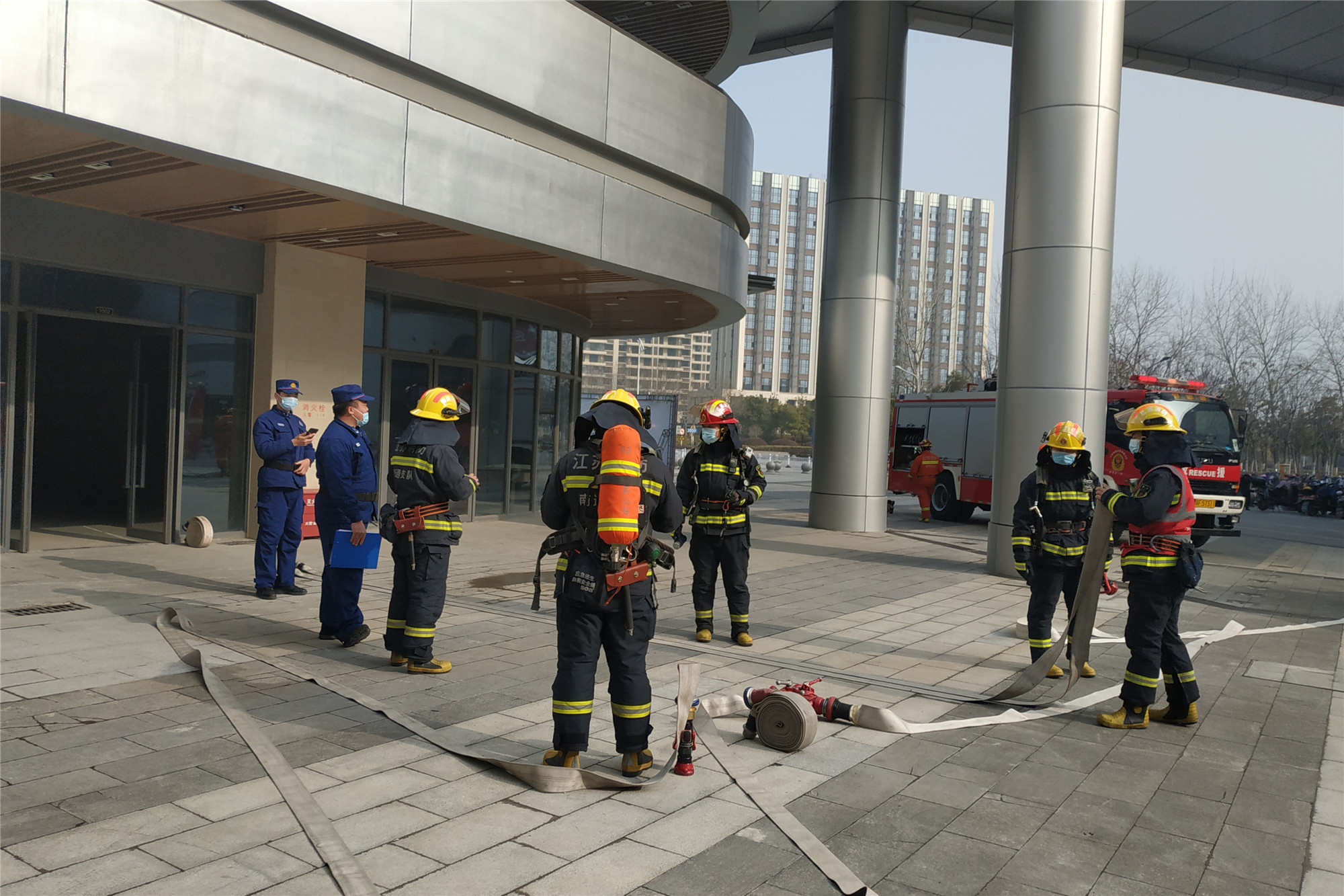 國(guó)城廣場(chǎng)是一個(gè)集商業(yè)、寫(xiě)字樓、公寓等為一體的商業(yè)綜合體。為提高消防救援對(duì)商業(yè)綜合體火災(zāi)事故的應(yīng)急處理能力,觀(guān)音山消防救援中隊(duì)聯(lián)合國(guó)城廣場(chǎng)于1月27日上午,在國(guó)城廣場(chǎng)開(kāi)展了商業(yè)綜合體消防檢查與滅火救援演練。