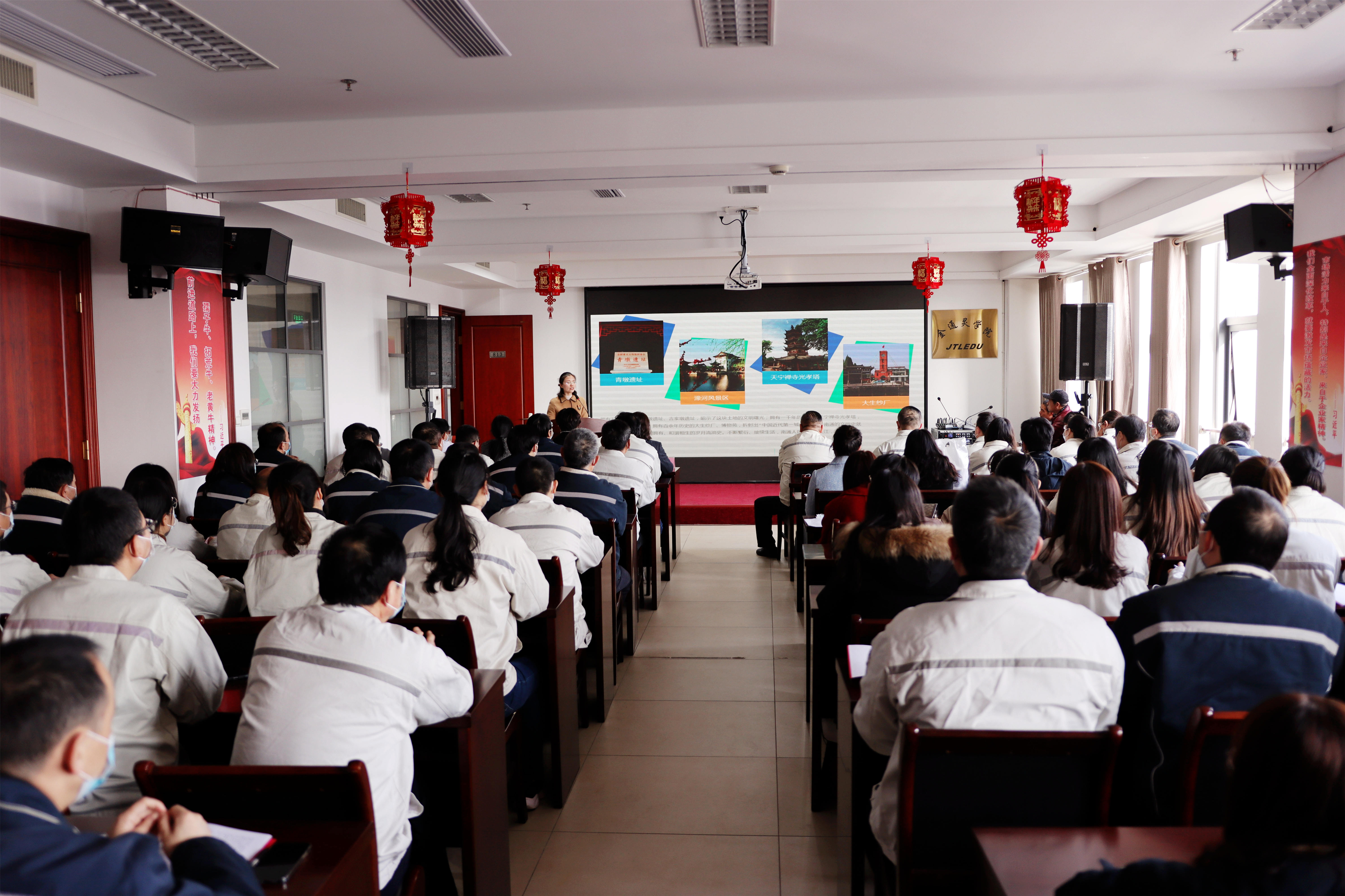 紅色的燈籠帶著節(jié)日的余溫與暖心的“習(xí)語金句”一起裝點著會場的氛圍,臺上宣講員循循善誘,為金通靈職工帶來滿滿理論“干貨”;臺下聽眾聚精會神,給宣講員們送去陣陣掌聲。2月23日下午,崇川區(qū)“學(xué)習(xí)貫徹習(xí)近平總書記視察江蘇重要講話精神”宣講團(tuán)首場宣講活動在金通靈學(xué)院內(nèi)成功舉辦。