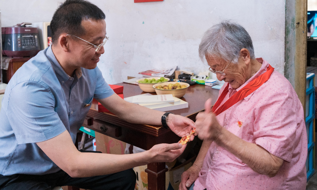 在老黨員家中,尹紅宇為老人家頒發(fā)了紀(jì)念章,向他們表達(dá)了崇高的敬意和深切的問(wèn)候,并親切詢問(wèn)了老人們的身體狀況、生活情況,以及當(dāng)年的戰(zhàn)斗歷程,傾聽(tīng)他們的心聲,叮囑他們要好好保重身體,安享晚年幸福生活。尹紅宇還為離休干部贈(zèng)送了學(xué)習(xí)書(shū)籍,并送上黨組織的關(guān)懷。