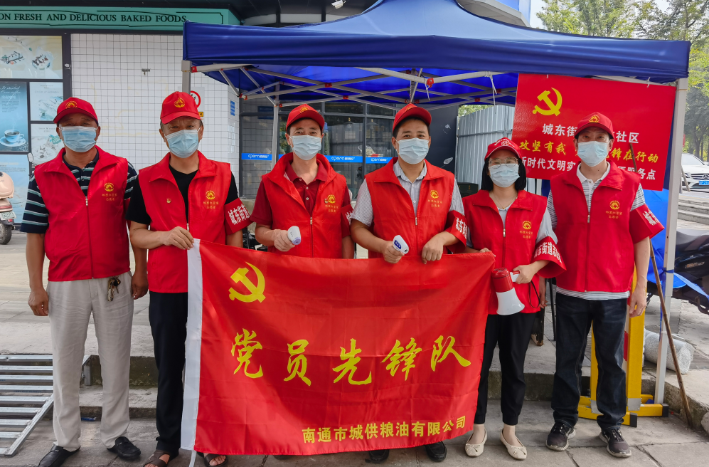 黨旗所指,團(tuán)旗所向。為充分發(fā)揮黨員先鋒模范作用,青年帶頭作用,城供公司成立了黨員先鋒隊(duì)、青年突擊隊(duì)。27日下午,張垛儲(chǔ)備庫(kù)青年突擊隊(duì)成員們利用工作外時(shí)間前往海安市雅周鎮(zhèn)興雅社區(qū),穿上紅馬夾,戴上紅帽子,為進(jìn)入小區(qū)居民測(cè)體溫、查看行程碼;公司本部青年突擊隊(duì)隊(duì)員們伴隨烈日,前往濠東社區(qū)開(kāi)展除草、地面清潔等志愿服務(wù),經(jīng)過(guò)大家共同勞動(dòng),社區(qū)面貌得到了較大改善。