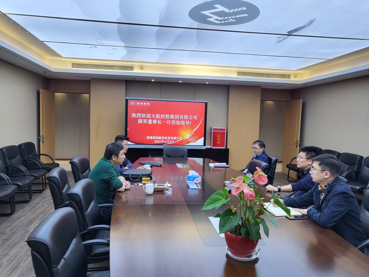 11月5日,大航控股集團有限公司董事長薛軍一行到訪國潤租賃,國潤租賃公司董事長陳大鵬、總經(jīng)理陸健、業(yè)務(wù)部、財務(wù)部相關(guān)負責人參加座談交流。