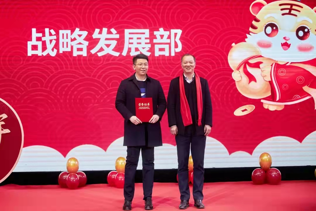 集團領(lǐng)導(dǎo)為2021年發(fā)展貢獻獎獲獎部門及優(yōu)秀員工頒獎,先進部門及員工代表、名校優(yōu)生代表分享了工作感言。