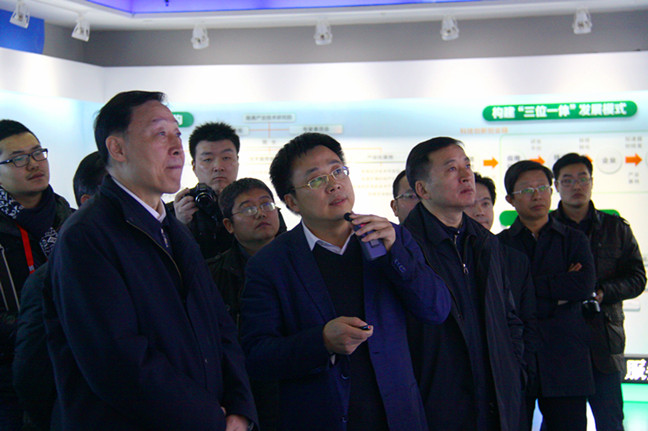 羅志軍一行在南通產(chǎn)業(yè)技術(shù)研究院展示中心認(rèn)真聽取了產(chǎn)研院總經(jīng)理沈風(fēng)雷關(guān)于研究院在構(gòu)建研究機(jī)構(gòu)、科技園區(qū)、產(chǎn)業(yè)基地三位一體運(yùn)作模式等方面的情況介紹,詳細(xì)了解了產(chǎn)研院在智慧建筑、智能裝備、新材料、互聯(lián)網(wǎng)經(jīng)濟(jì)等領(lǐng)域的最新科研成果。在希盟智能健康監(jiān)護(hù)系統(tǒng)模型展示前,羅志軍與企業(yè)負(fù)責(zé)人認(rèn)真交流,仔細(xì)詢問最新研究成果和產(chǎn)業(yè)化進(jìn)展。在觀看了眾誠(chéng)生物納米修復(fù)材料現(xiàn)場(chǎng)演示后,羅志軍高興地說,這樣的科技創(chuàng)新不僅能夠有效解決企業(yè)發(fā)展中遇到的技術(shù)難題,而且在環(huán)境保護(hù)方面取得了關(guān)鍵突破。